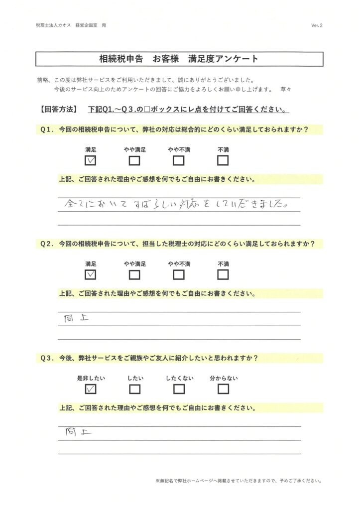 飛び込みにてご依頼したにも関らず、丁寧にご対応いただき、感謝しております。