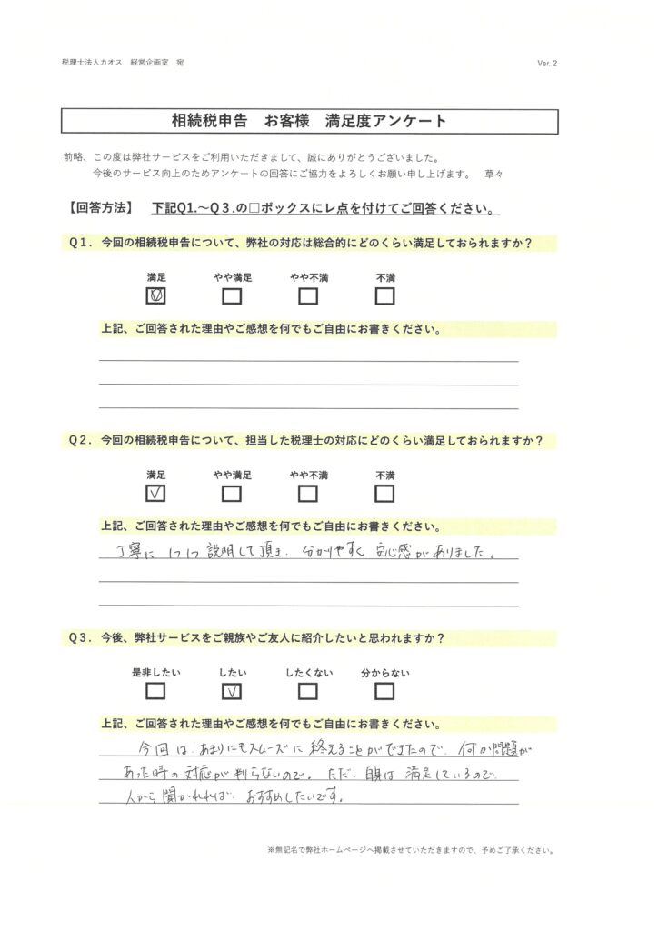 飛び込みにてご依頼したにも関らず、丁寧にご対応いただき、感謝しております。